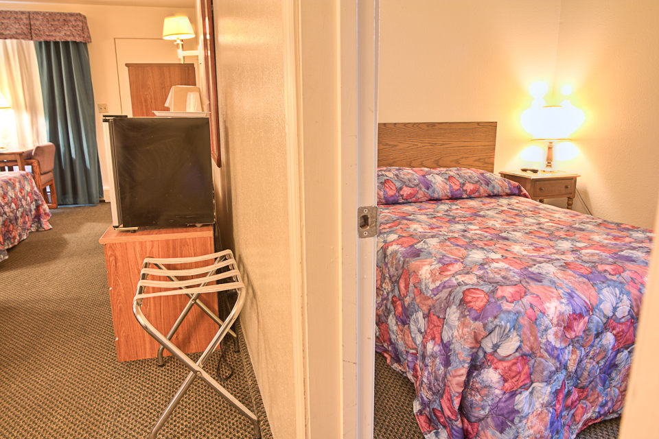 Our spacious single queen rooms are furnished with a queen sized bed. Amenities include a refrigerator, microwave, free wireless internet, a 32” Cable TV, and includes toiletries. A hair dryer, iron and ironing board, radio alarm clock are all available upon request. Also, you have free access to fresh brewed coffee, hot chocolate, and tea at our coffee station. Join us in the morning for a wonderful continental breakfast. Enjoy your stay at the Big Sky Motel! Occupancy: 2